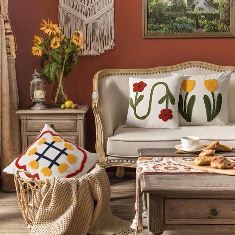 Boho Decorative Throw Pillow Covers Embroidered Floral Pattern Square Pillowcases for Couch Sofa Bedroom Decor Cushion Cover