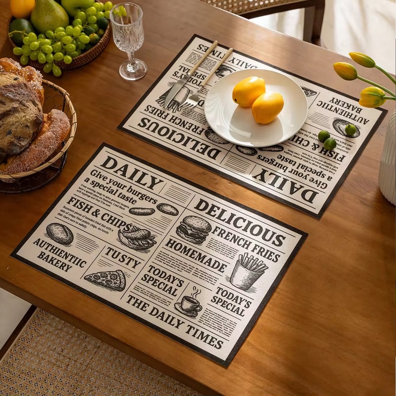 The Gastronomy Gazette Soft Linen Imitation Fabric Printed Placemats Heat-resistant Daily Food Newspaper Pattern Table Mat