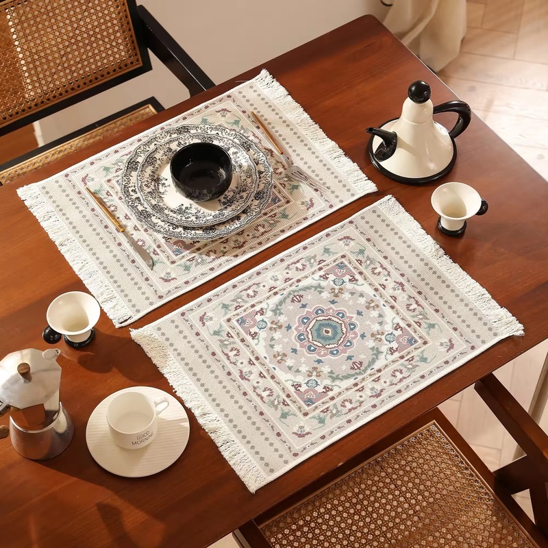 New Bohemian Style Woven Rectangle Plastic Mats Digital Printing Tassel Edge Table Mat for Dining Table