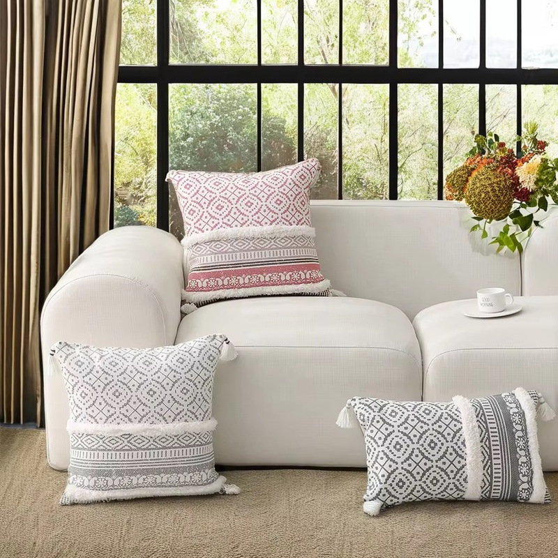 Bohemia Styles Bedding Decorative Throw Pillow case Printed Geometric Pattern with Tassel Cushion Cover 18x18inch