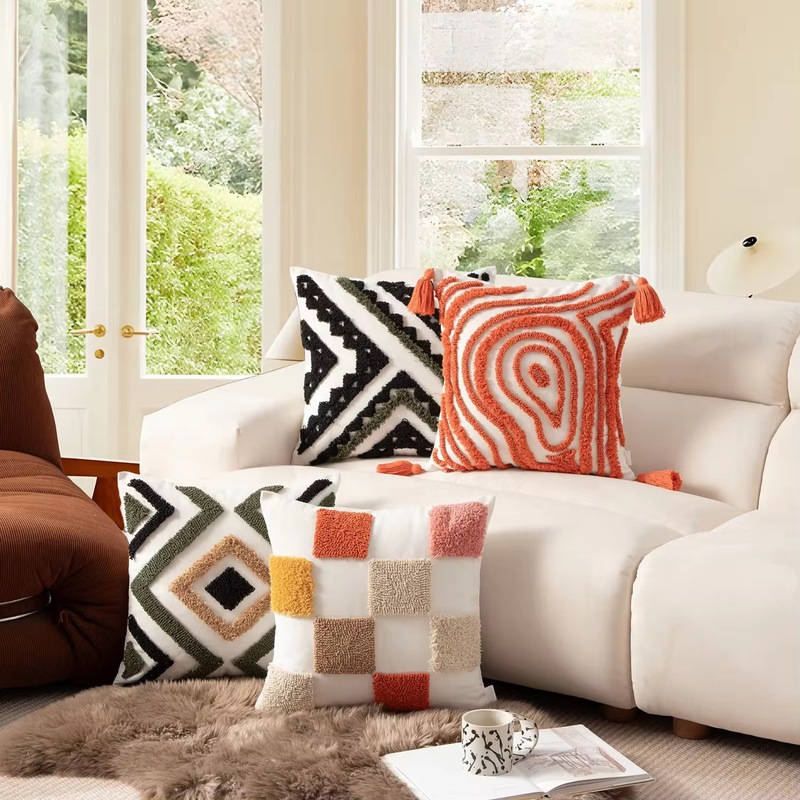 Loop-pile Pillow Cover Home Decor Tufted Cushion Cover Colorful Geometric Cushion for Sofa Living Room