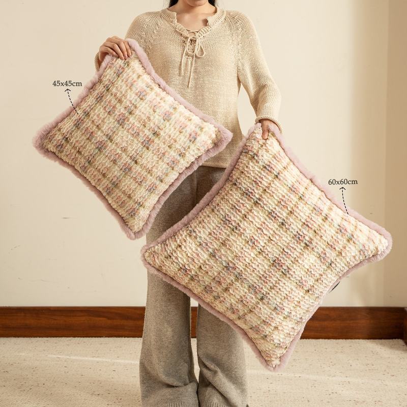 Modern Warmth Red Pink Printed Fluffy BTC Gift Pillowcase Geometric Pattern Sofa Bed Home Decor Cushion Cover Easy to Clean