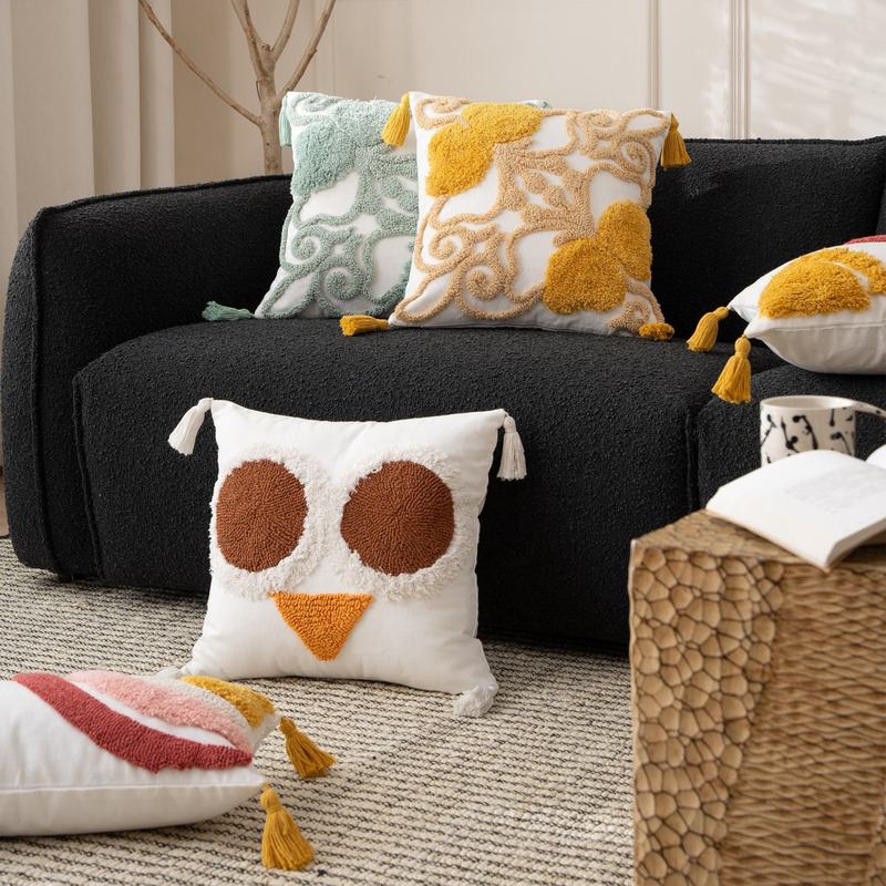 Boho Colorful Lovely Cartoon Home Decorative Soft Tufted Cushion Cover With Tassel for Living Room Pillowcase