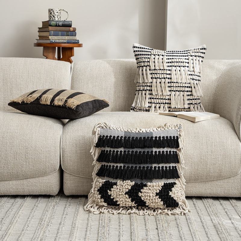 Minimalist Elegant Handmade Weave Home Decor Cushion Cover Living Room Sofa Bedroom Handwoven Pillowcase With Tassel
