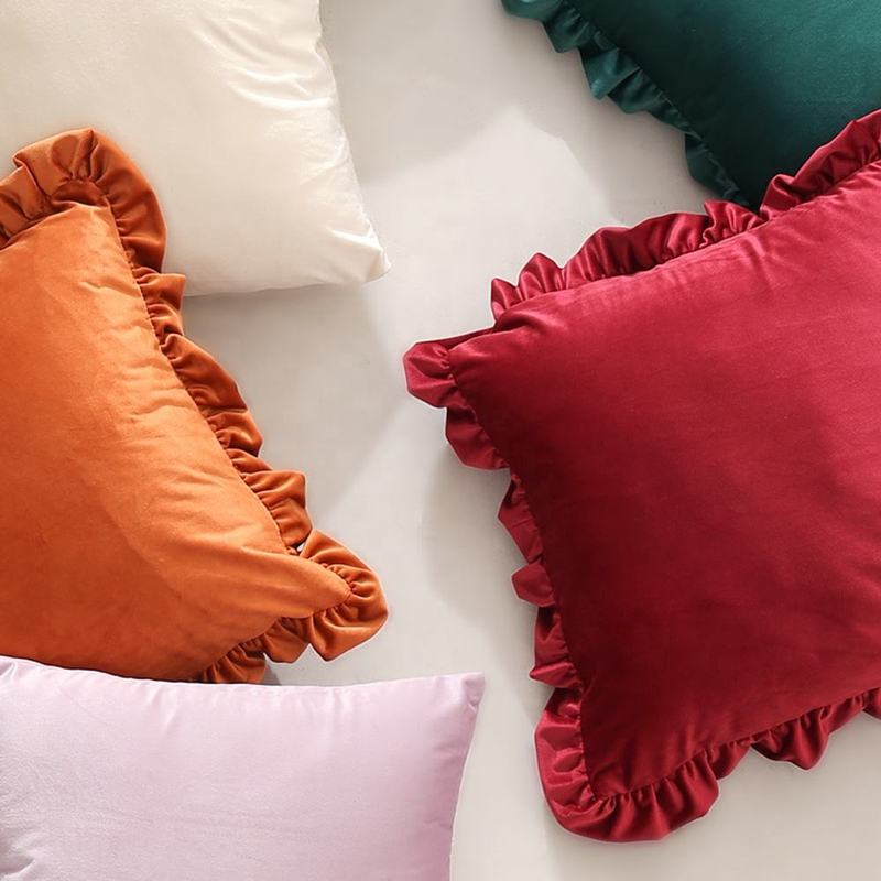 18x18inch 45x45cm Wholesale Custom Luxury Ruffled Fringe Sofa Pillow Case Dutch Velvet Cushion Cover Home Decor