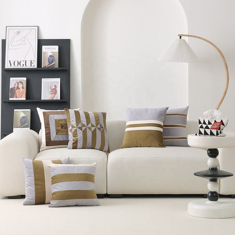 High Quality Grey Collection 18x18 Complementary Triangles Stitch Decorative Throw Pillow Cover Velvet Soft Square Cushion Cover