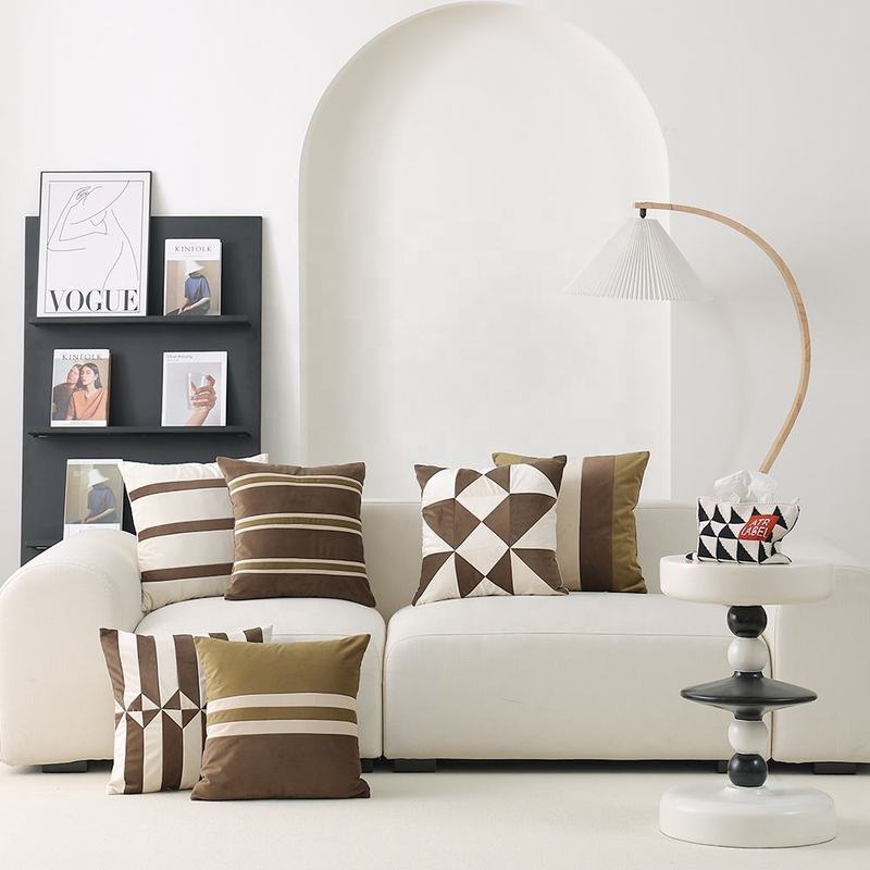 High Quality Brown Collection Velvet Stripe Throw Pillow Cover for Home Decorative Goods Holiday Gift