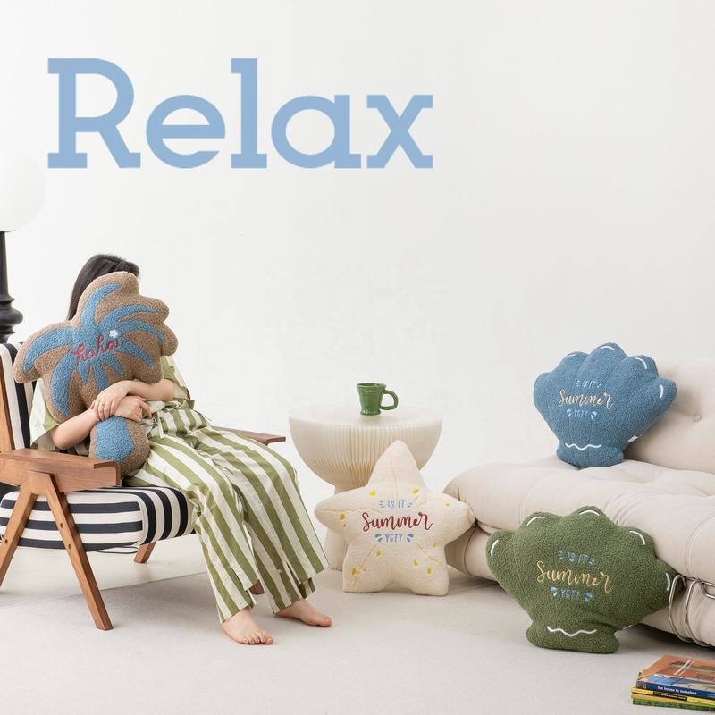 Colorful Starfish Shell Design Novelty Velvet Embroidery Pillow Decor Cushion for College Students Vacummed Shaped Pillows