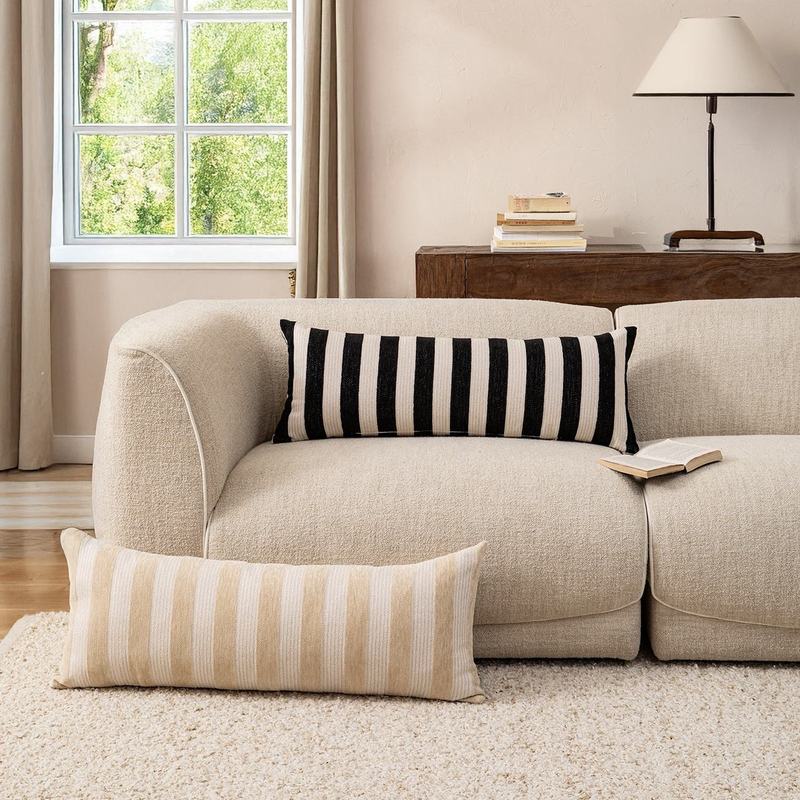 Timeless&Cozy Minimalist Style Wide-stripe Home Decor Pillowcase Soft Chenille Fabric Woven Technics Long Sleep Cushion Cover