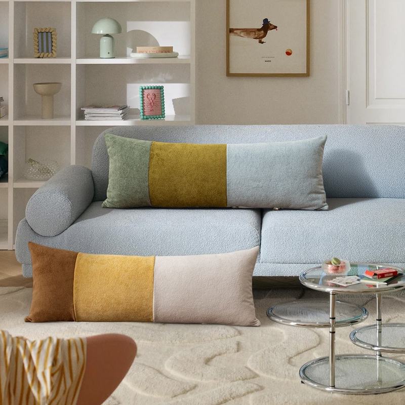 BTC Collection Macaron Patchwork Soft Flannel Long Bed Pillowcase Sofa Living Room Bedroom Home Decor Cushion Cover