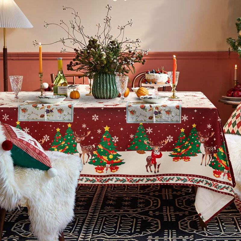 Christmas Hot Selling Printed Super Soft Kitchen Home Decor Tablecloth Party Wedding Decor Santa Snowflake Design Table Cover