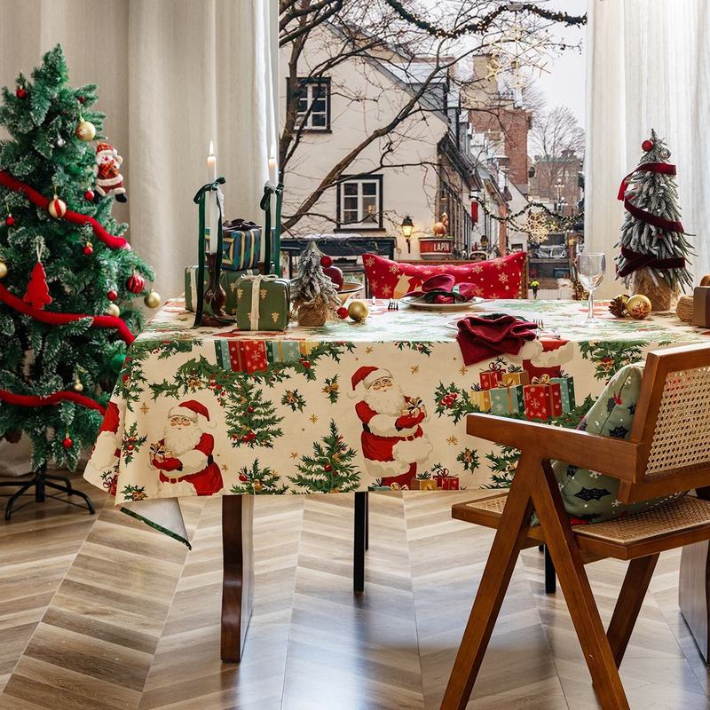 Christmas New Design Home Decor Printed Soft Tablecloth Soild Color in the Back Party Wedding Christmas Gift Table Cover