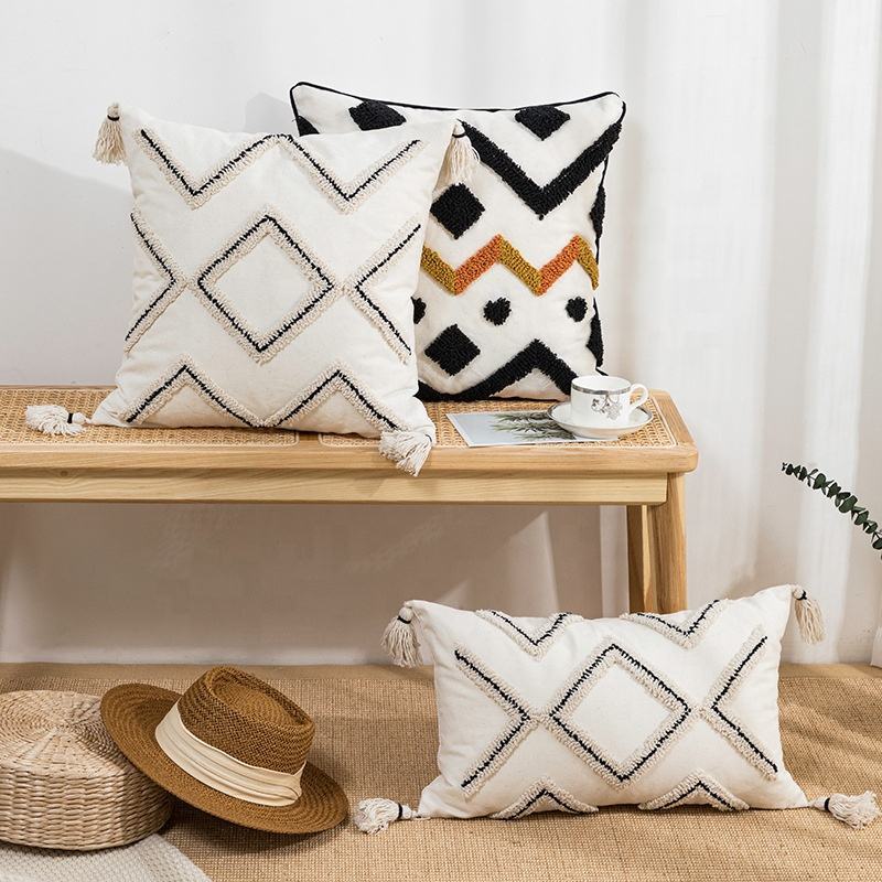 BOHO Style Geometric Pattern Cushion Cover Moroccan Tufted Throw Pillow Cover for Home Decor