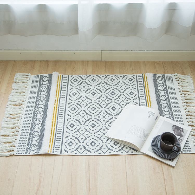 Home Decor Rectangle Printed Tufted Area Rug Boho Geometric Pattern Carpet With Hand-knotted Tassels