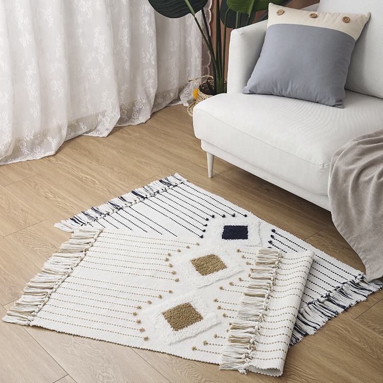 Hot Selling Boho Tufted Area Rug Home Decoration Diamond Line Carpet With Hand Knotted Tassel for Living Room Bedroom Hallway