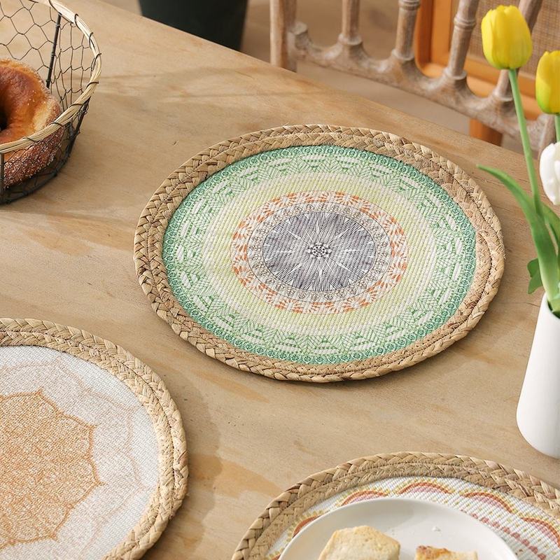 Hot Selling Boho Multi Function Original Design Colorful Printed Round Natural Water Hyacinth Placemat