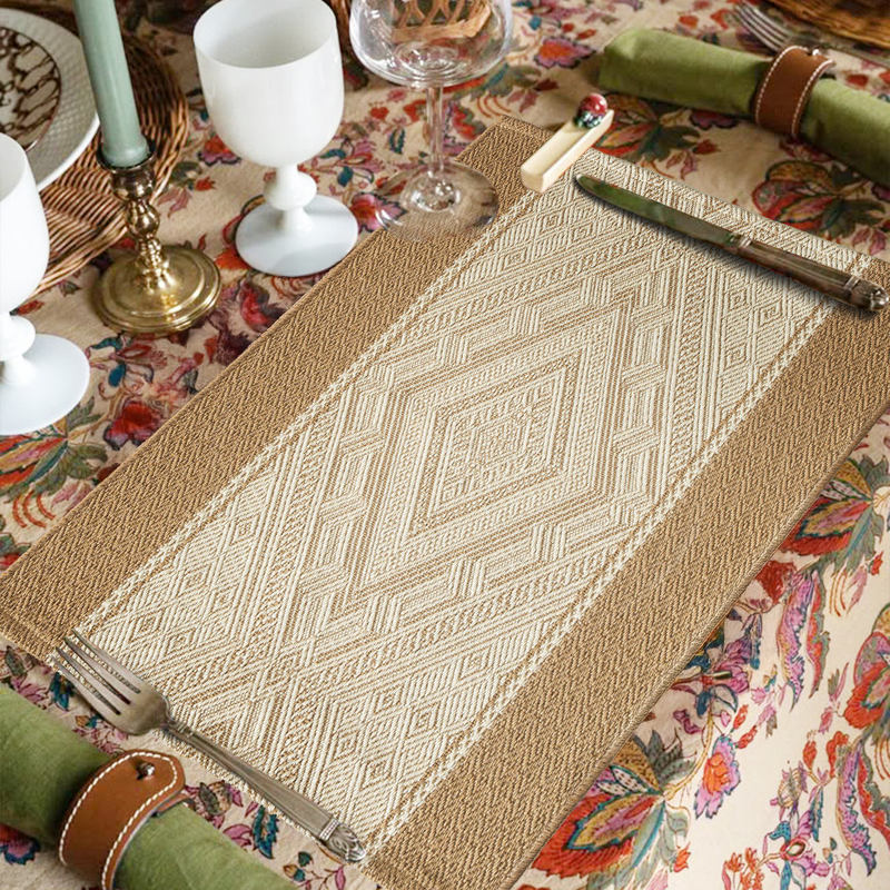 5Colors Vintage Style Placemat Jacquard Woven Kitchen Mat Decorative Table Mat for Garden