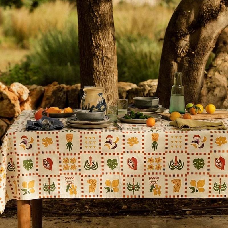 Tropical Style Printed Fruit Palm Tree Checkered Pattern Home Decor Tablecloth Heat-resistant Washable Table Cloth for Kitchen