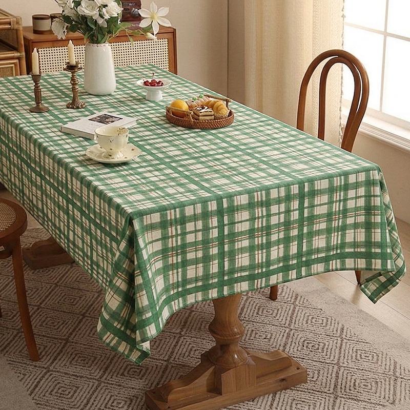 Vintage Green Yellow Stripes Checkered Pattern Printed Tablecloth Heat-resistant Washable Party Kitchen Home Decor Table Cloth