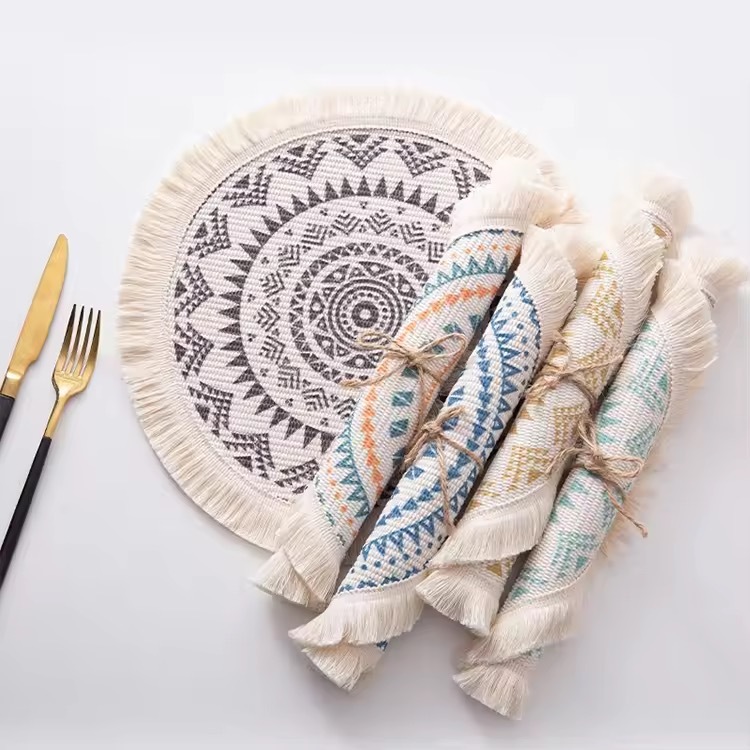 Boho Cotton High Quality Wedding Party Decorative Dining Table Decor Elegant Round Table Mat Printed Woven Placemats