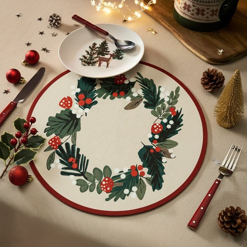 Christmas Nutcracker Pinecone Pattern Brightly Printed Soft Placemats Composite Backing Table Cover Heat-resistant Table Mat