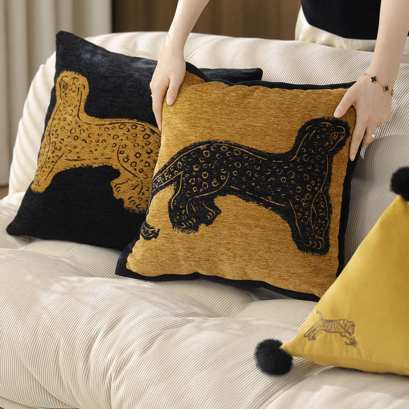 Classic Black Panther Chenille Jacquard Pillow Cover Wholesale Soft 45x45 Pillow Cases Cushion Cases